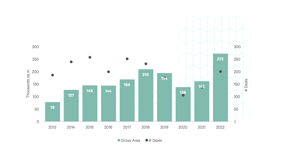 The logistics stock in Greater Porto currently stands at 1.7 million sq m. Over the past decade, additions to this stock have been exclusively through build-to-suit developments, as observed in 2022. However, we are now observing a resurgence of speculative projects.