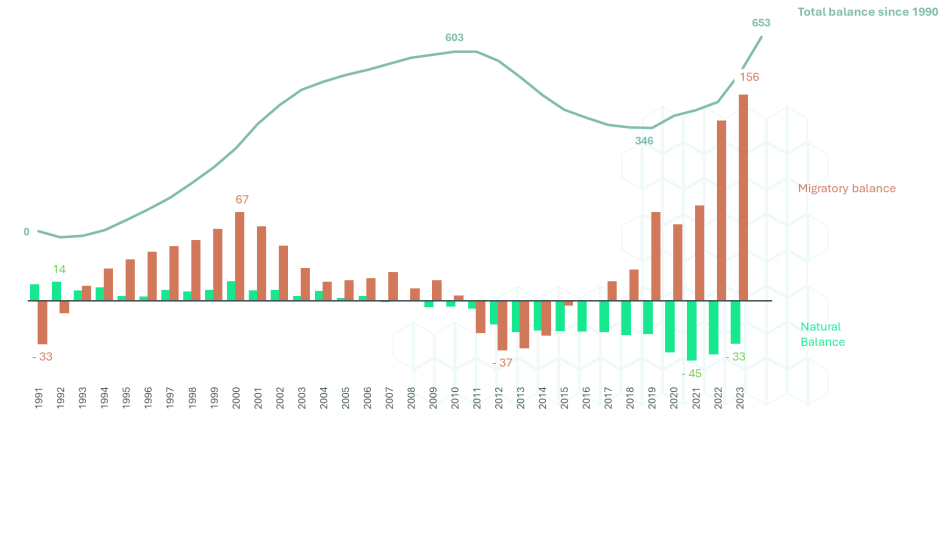 After losing population from 2009 to 2017, Portugal has exhibited a strong population growth with net gains in 2023 of more than 120 thousand people (roughly equivalent to 1% of the population).